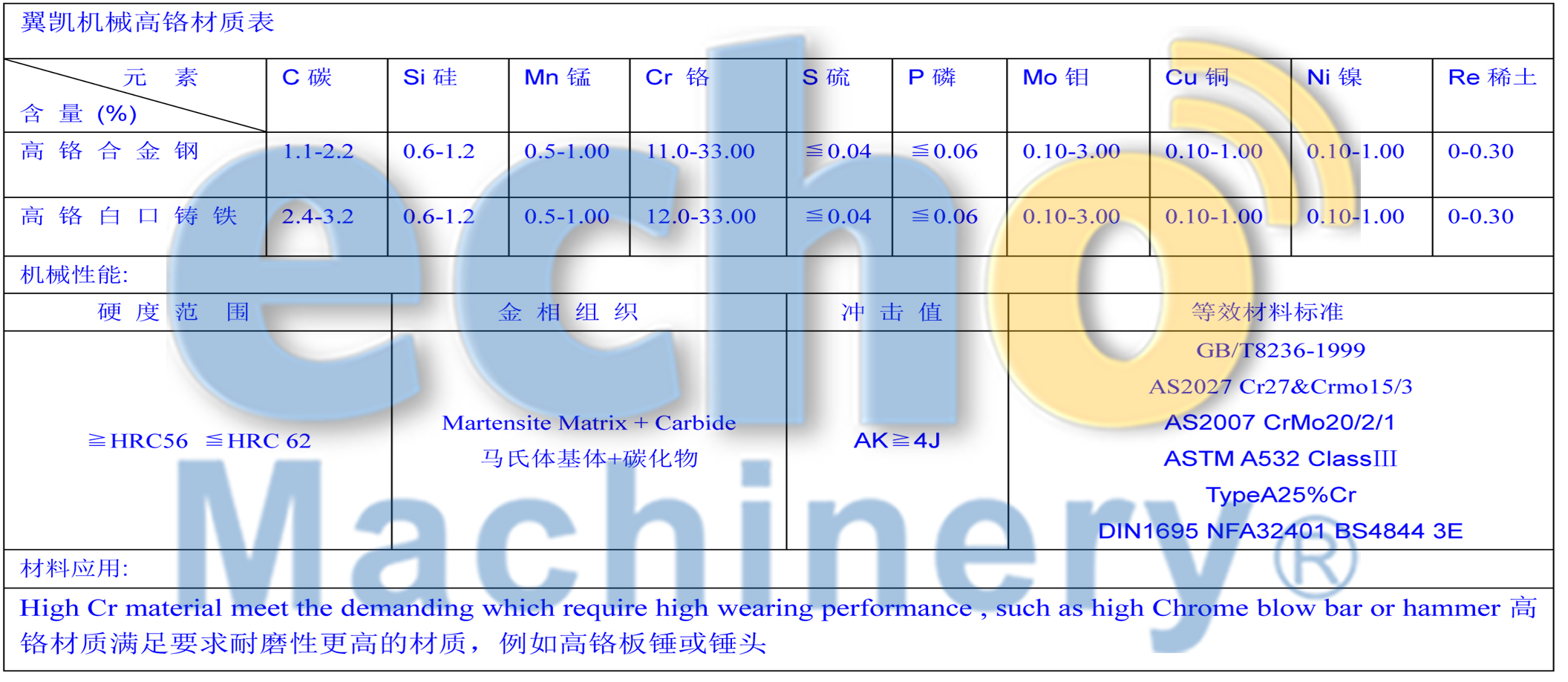 高鉻數據資料指得含2.0% -3.6%碳和11%-33%鉻的鑄鋼。它以高耐磨涂層機器和要具備企業合作力的成本而著名人物。